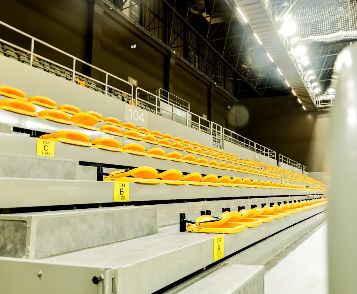 Our stadium seats—available in fixed and tip-up versions—are built for durability, UV resistance, and comfort in high-capacity arenas. For universities and schools, we deliver integrated seating and desk systems that prioritize student focus and long-term usability.
